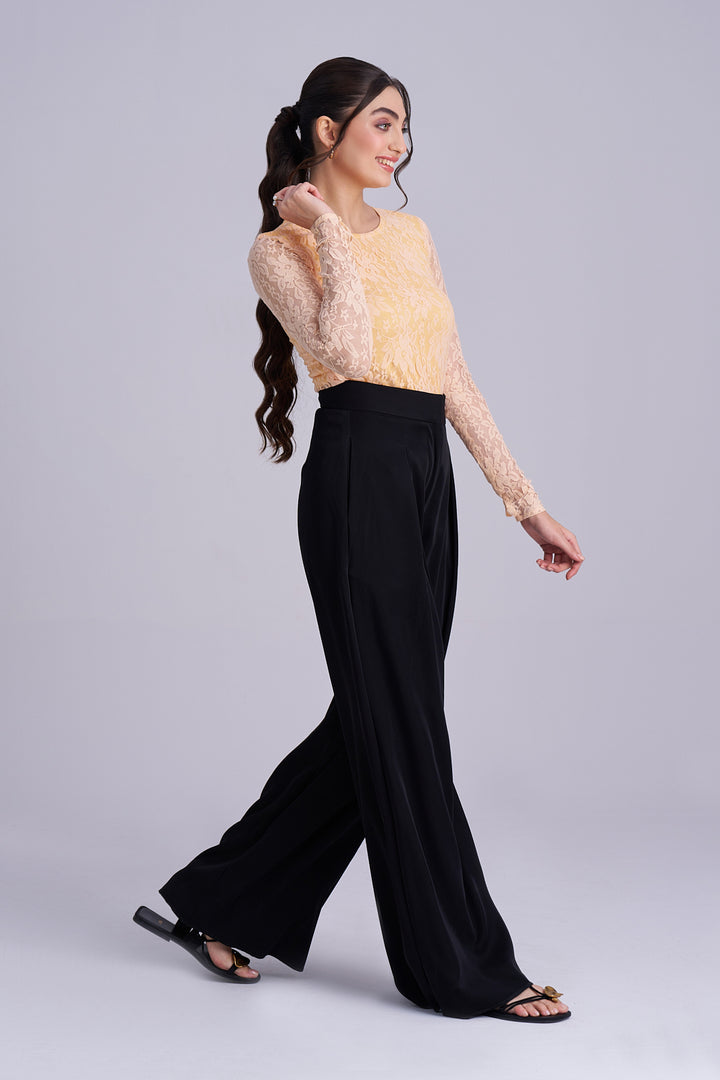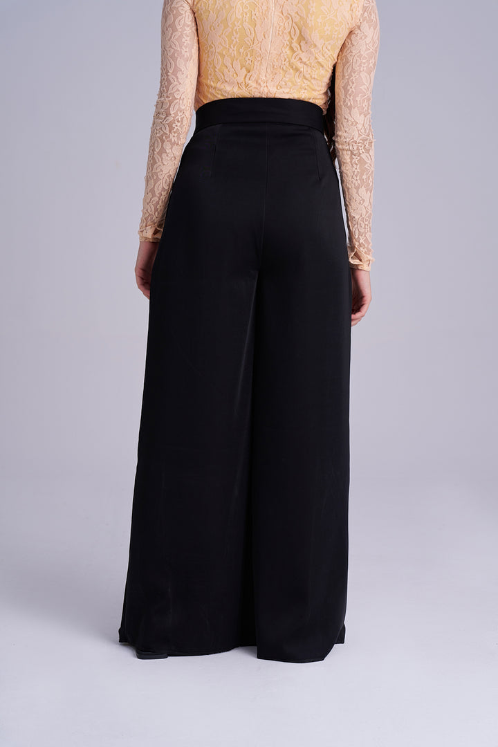 Luxurious Korean Venta black pleated Palazzo | Elegant Stylish High-Waist Palazzos