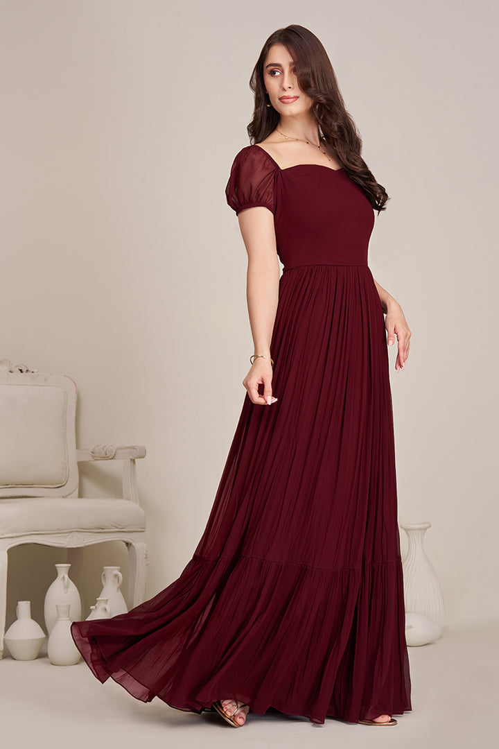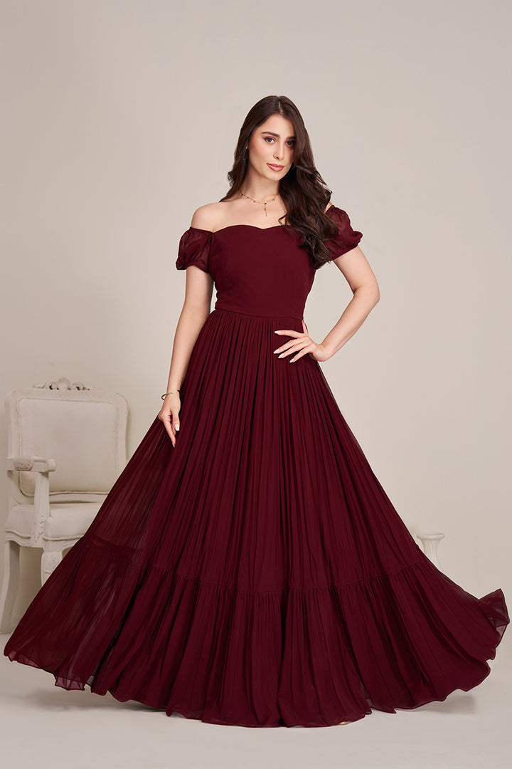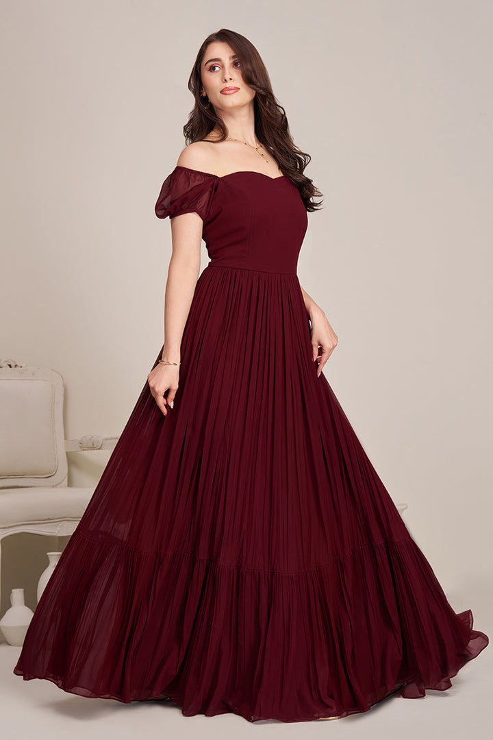 Maroon Women Gowns | Floor Length birthday Dress for women