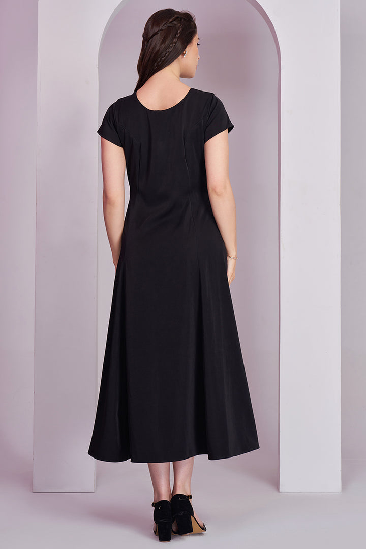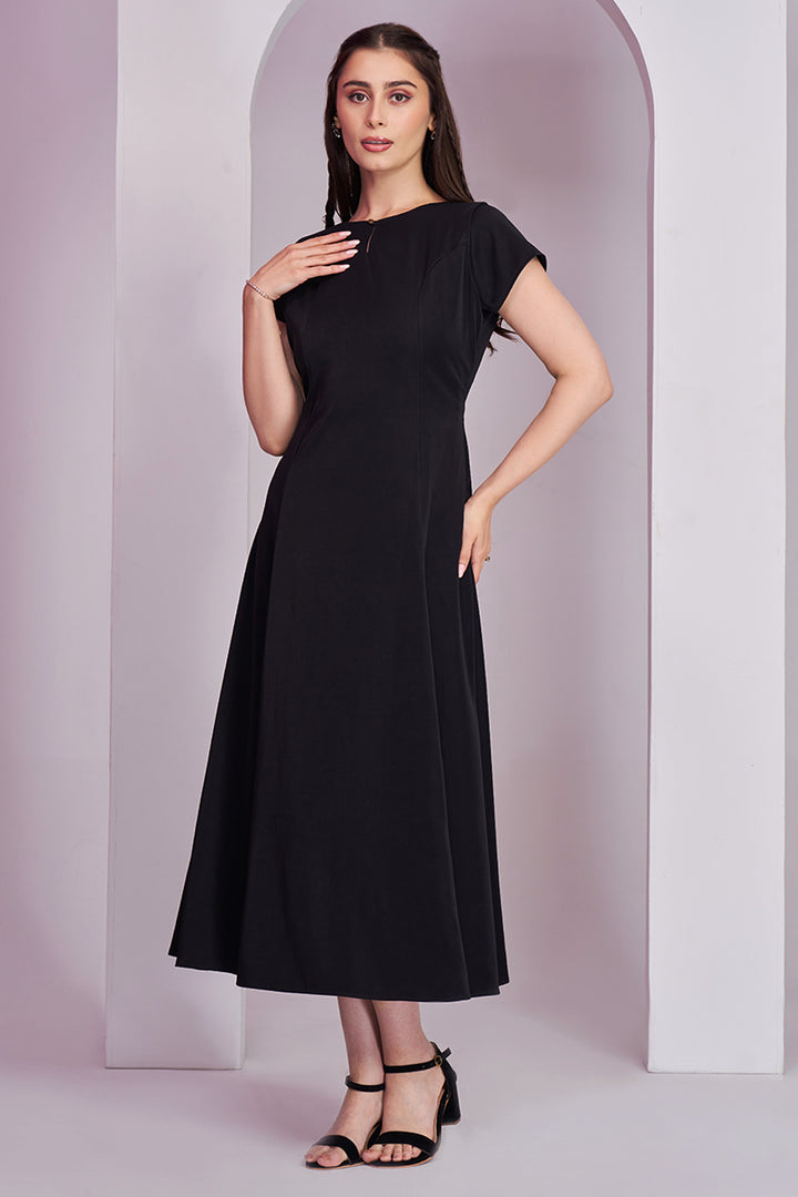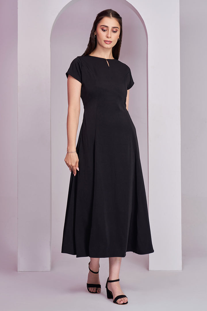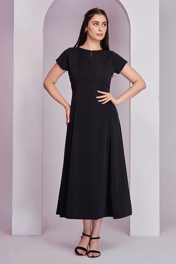 Minimalist Black Korean Dress for women | Semi - formal midi dress for women