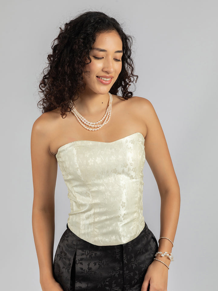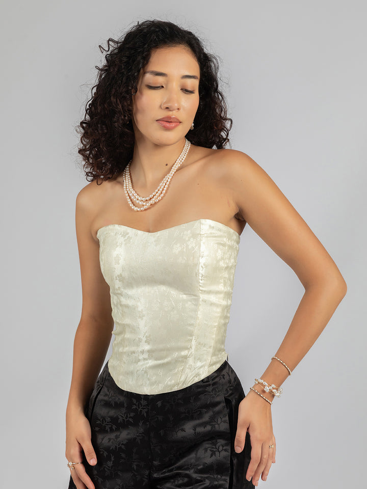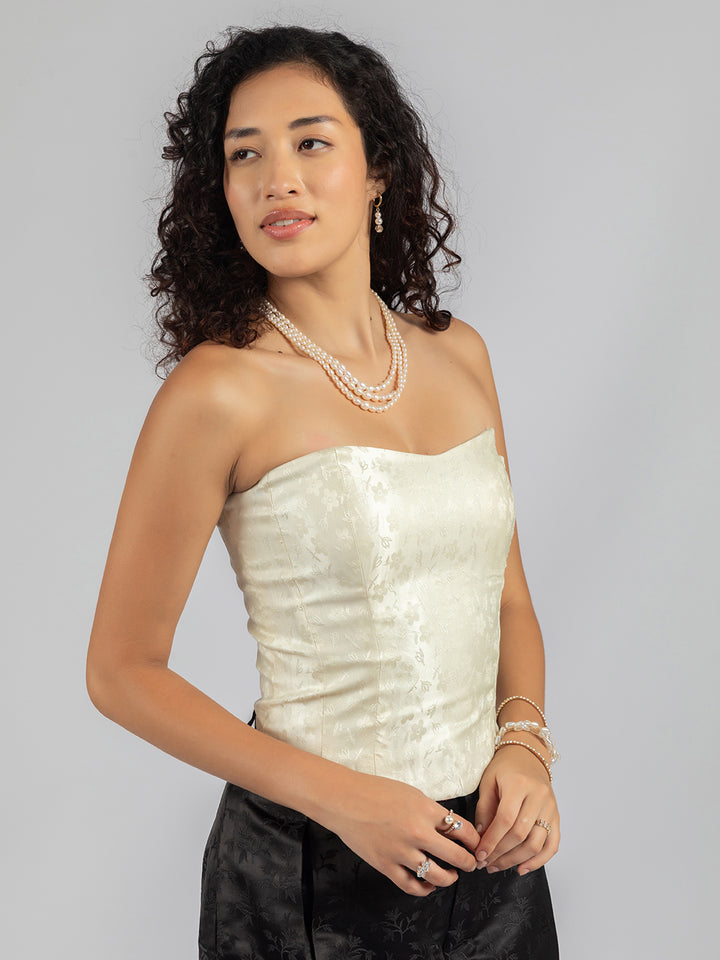 Off-White Brocade Corset Top | Brocade Tube Top for women