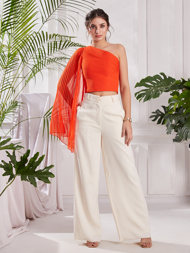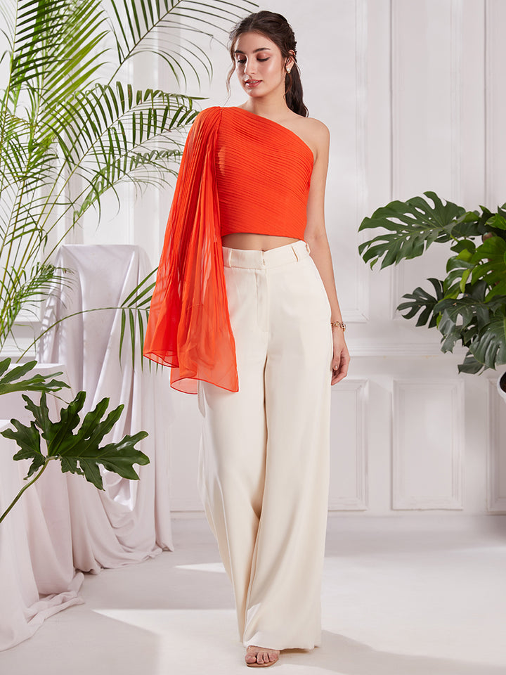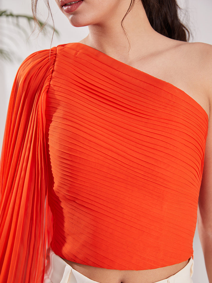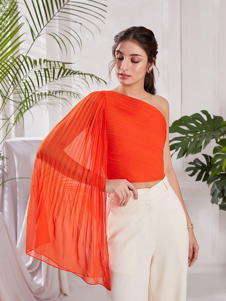 Orange One Shoulder Pleated Top | Designer One Shoulder Top for partywear