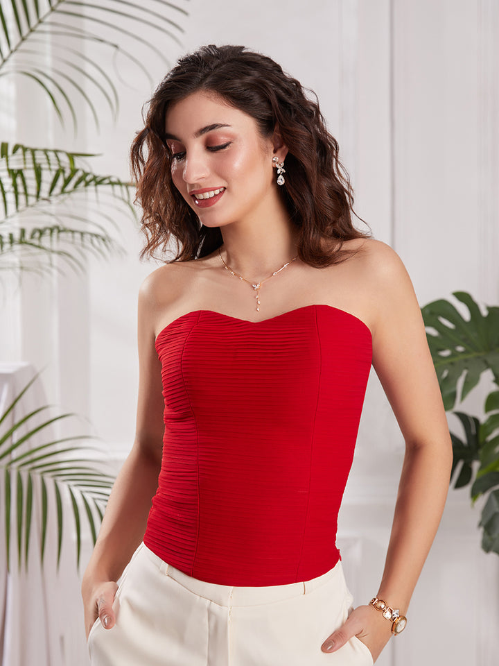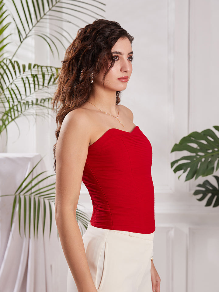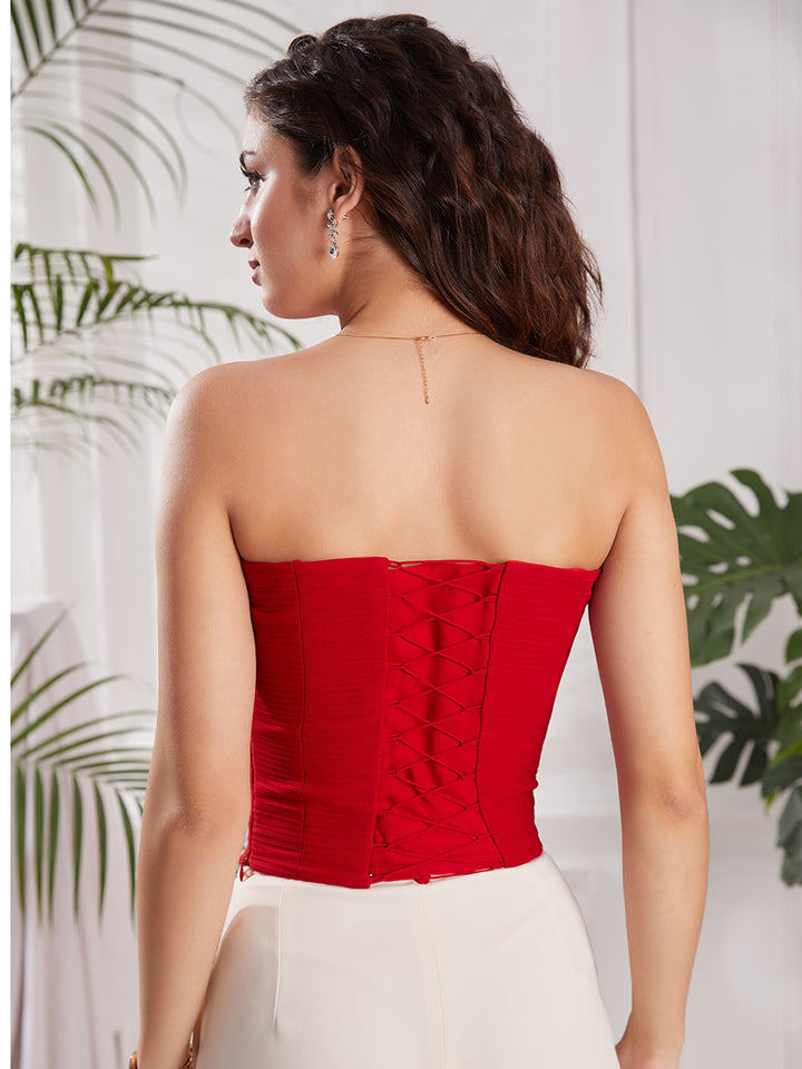 Red Strapless Corset Top | Elegant Red Party Top