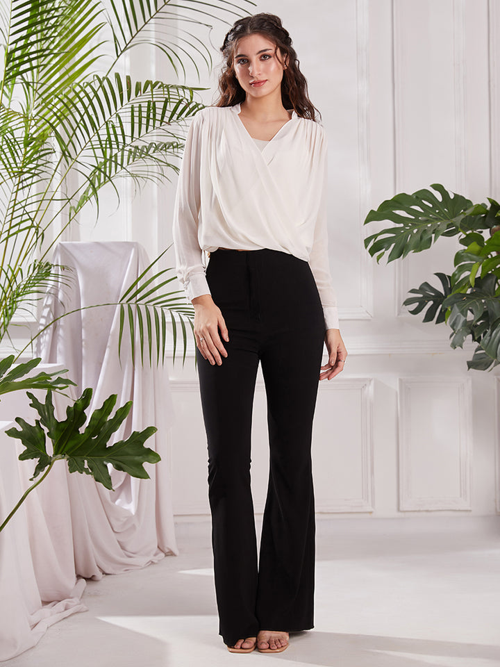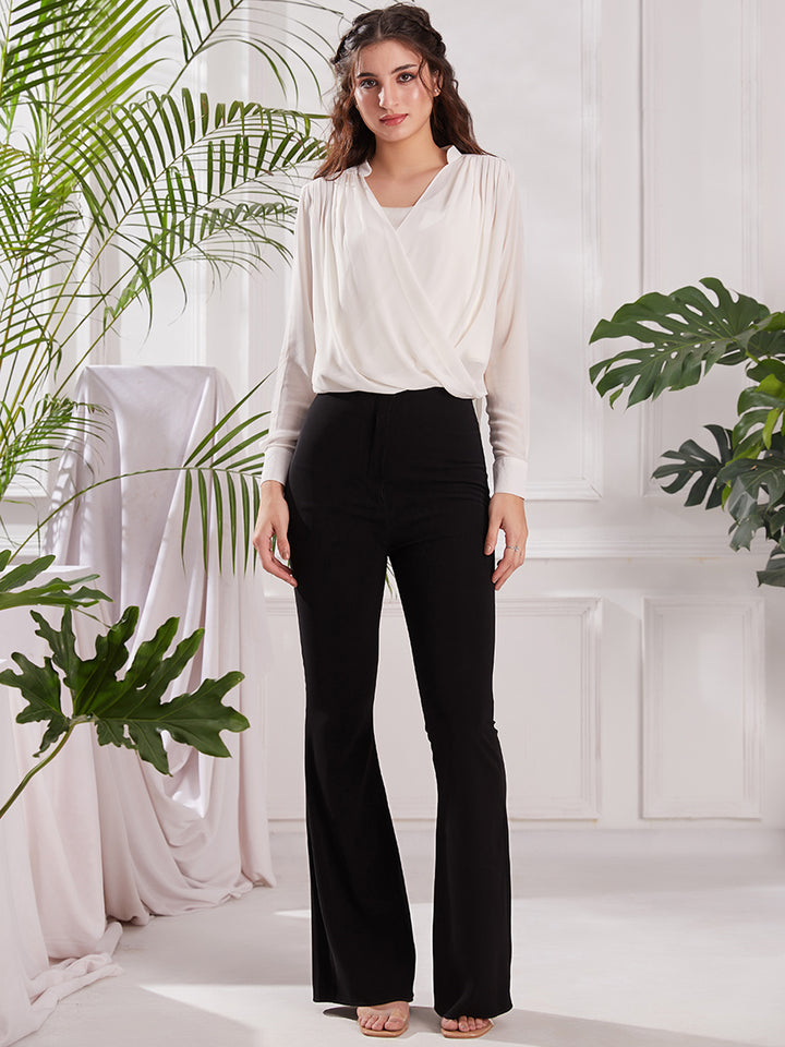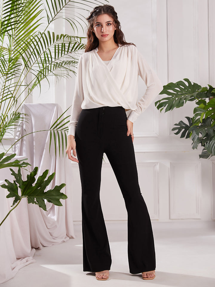 Your go-to black bell bottom sculpted pants for women – stylish, versatile.. Perfect as formal pants for the office or casual trousers for everyday wear. The flattering fit, soft premium fabric, and timeless design make these women’s black trousers a wardrobe essential.